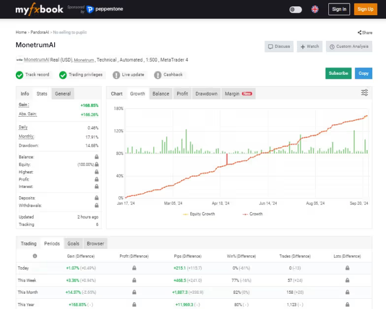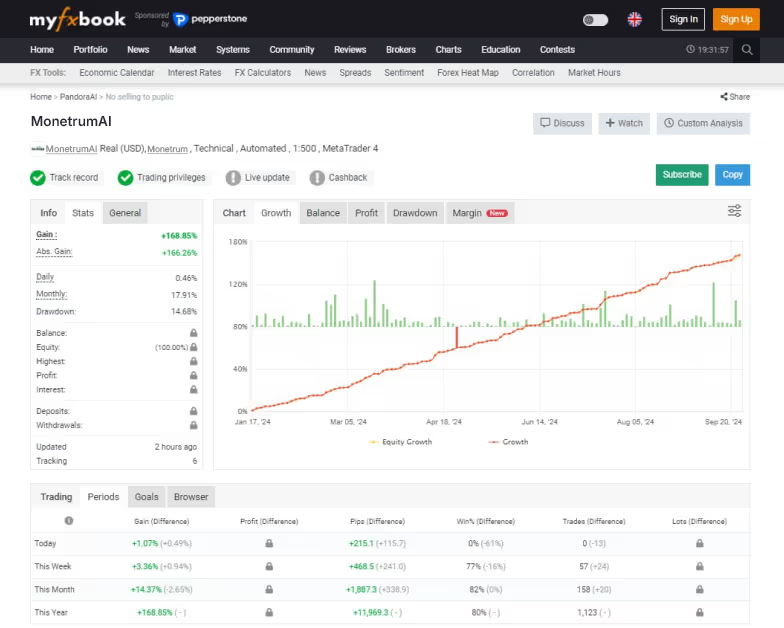 Monetrum AI uses a trend-following strategy with hidden Stop Loss and Take Profit systems, ensuring a positive risk-to-reward ratio for optimized gains.